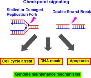 DNA damage, due to environmental factors and normal metabolic processes inside the cell, occurs at a rate of 1,000 to 1,000,000 molecular lesions per cell per day. A special enzyme (shown above in color), encircles the double helix to repair a broken strand of DNA. Without molecules that can mend DNA single strand and double strand breaks, cells can malfunction, die, or become cancerous. (Photo: Courtesy of Tom Ellenberger, Washington University School of Medicine in St. Louis)